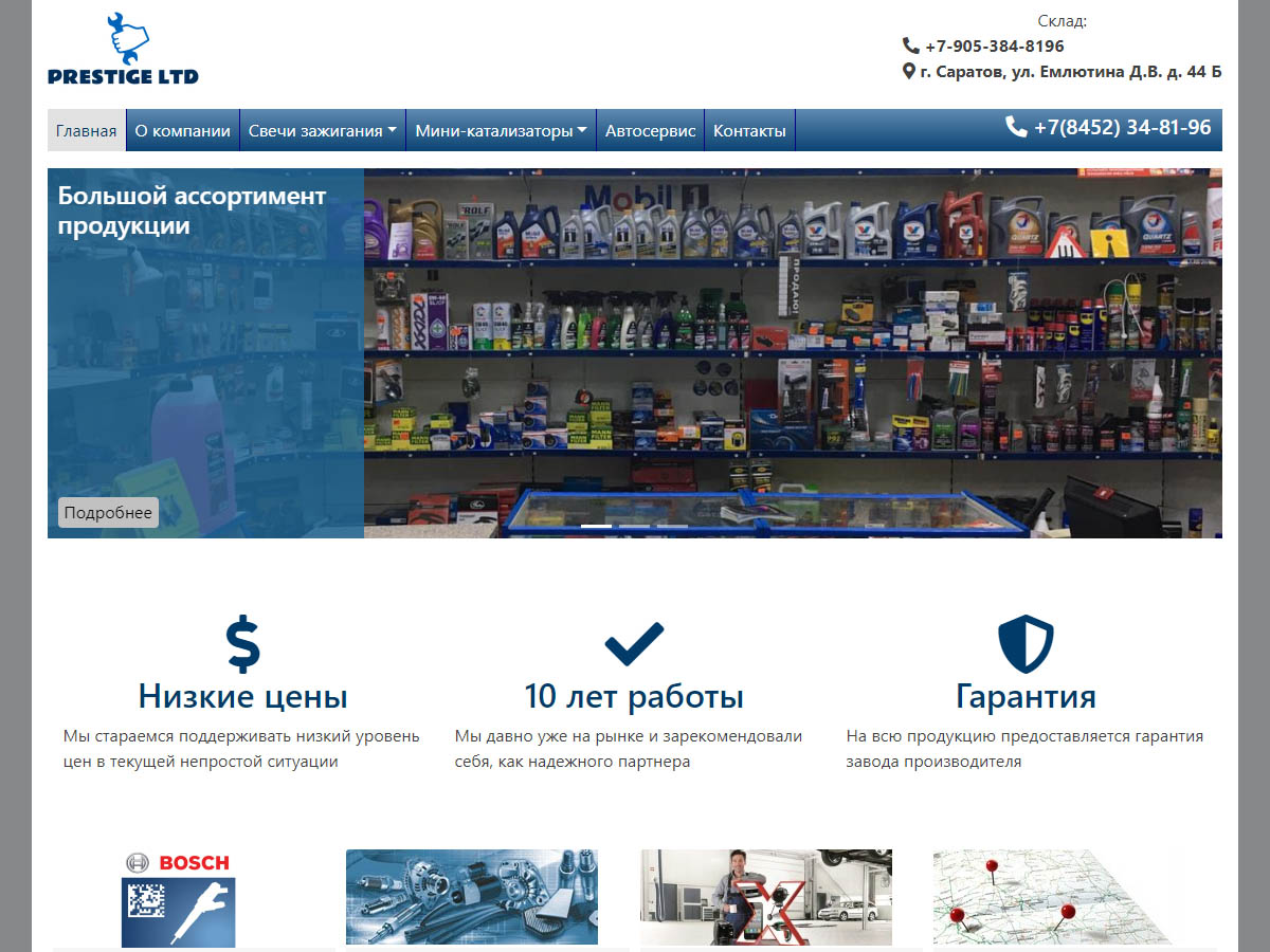 Сделан сайт в строгой минималистичной стилистике для компании Престиж Автосервис. Это сайт презентация компании.