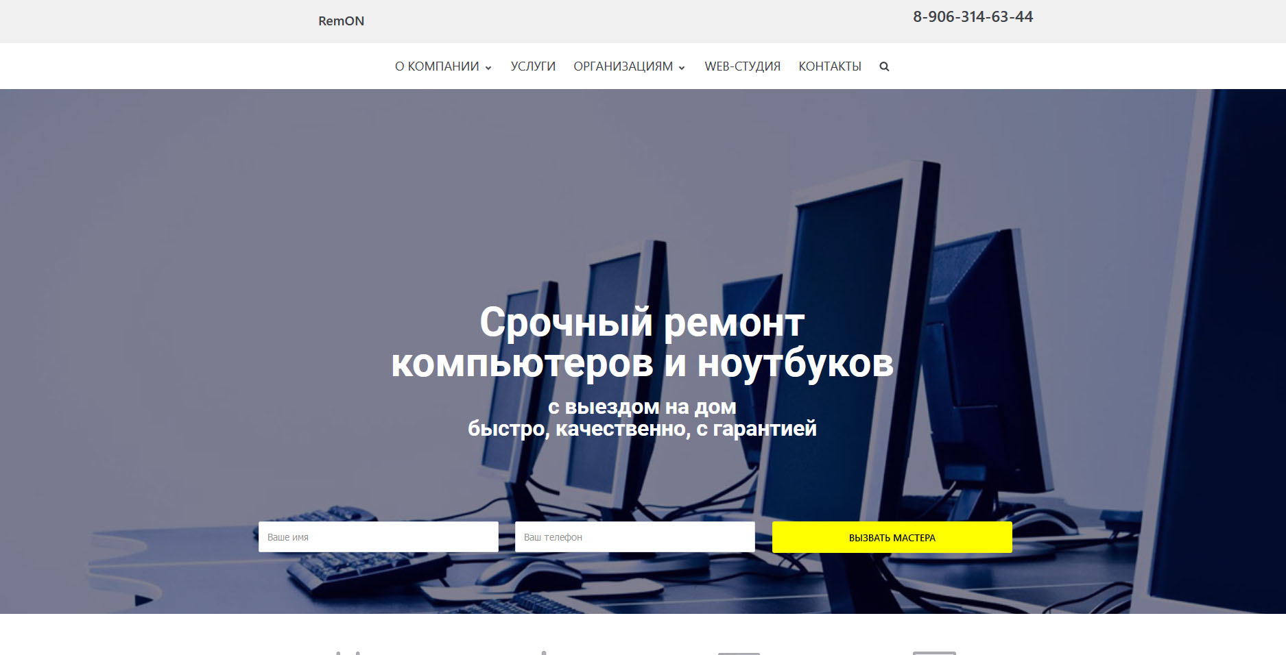 Сайт для компании по ремонту и обслуживанию компьютерной техники. Сделан на CMS WordPress.